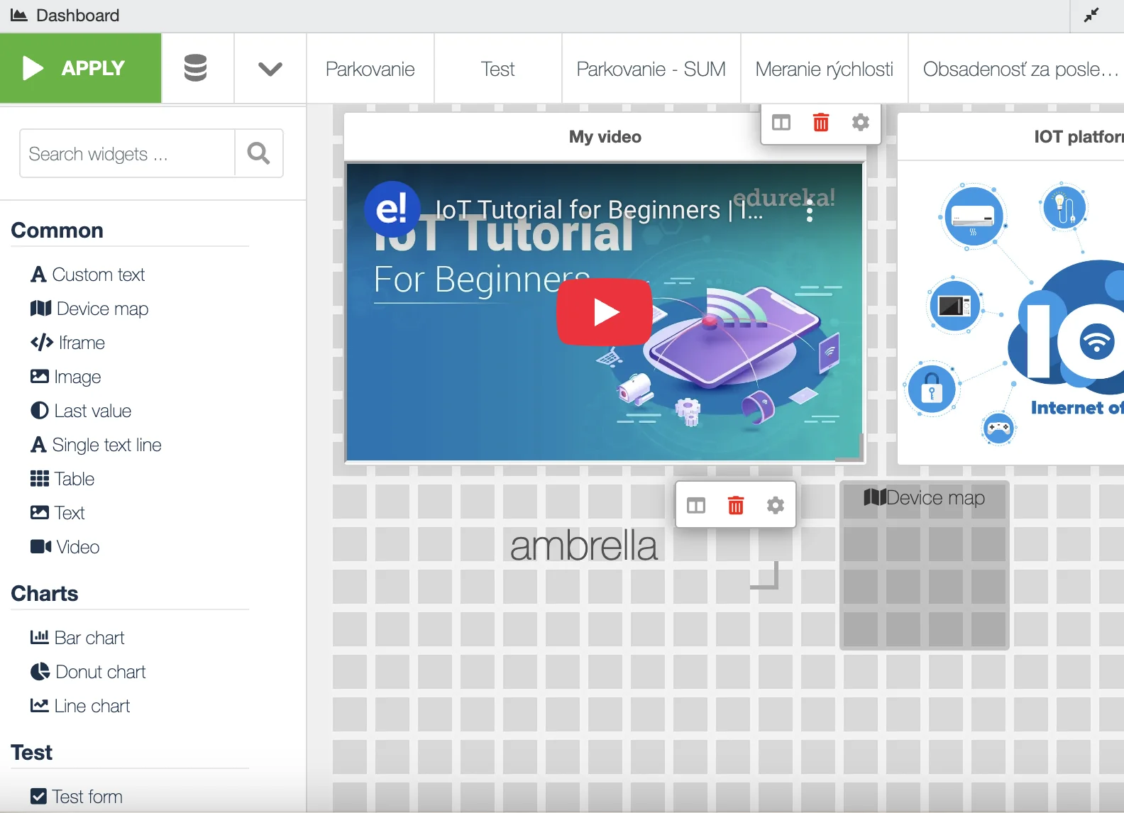 With a powerful drag-and-drop interface, you can easily design dashboards tailored to your operational needs — whether you're tracking energy consumption, parking availability, environmental readings, or traffic conditions.